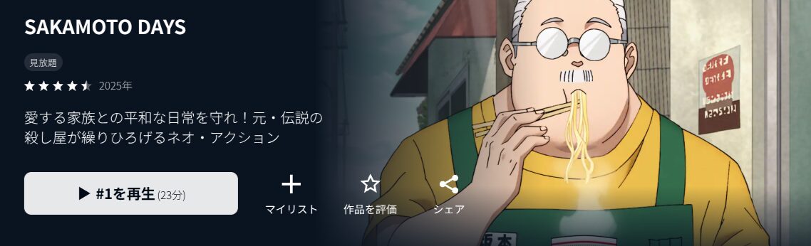 特に『SAKAMOTO DAYS』は、U-NEXTで今まさに見放題配信中。