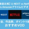- Amazonプライム・ビデオ: コスパ重視。作品数や質にバラつきあり。
